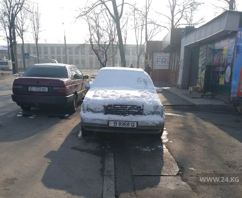 На улице Тыныстанова возле драмтеатра машина стояла на разметке пешеходного перехода.