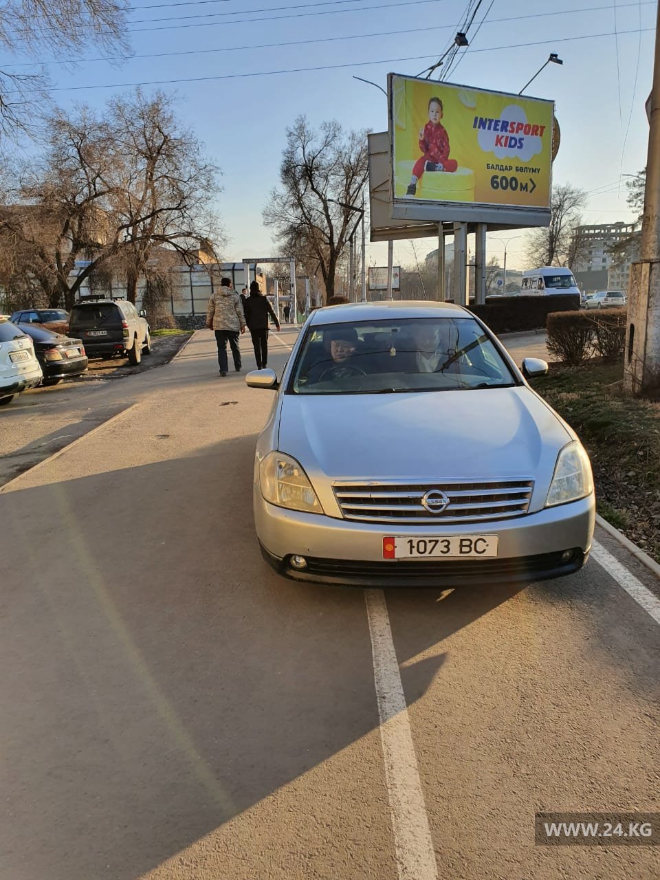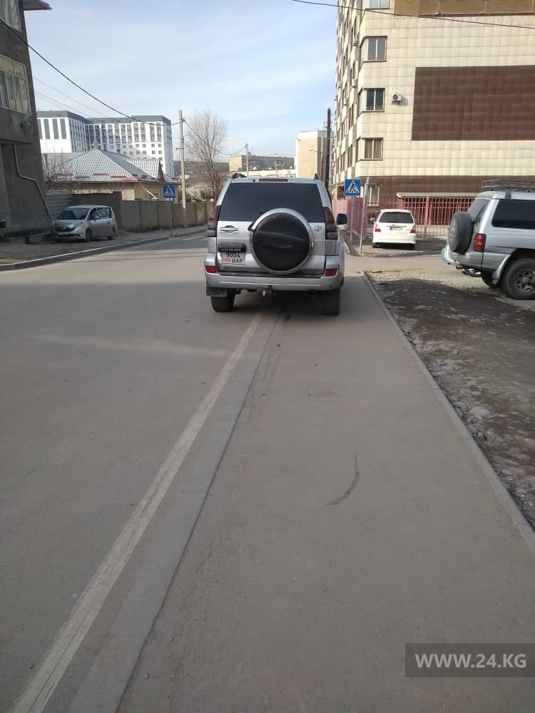 «В районе пересечения проспекта Чингиза Айтматова и улицы Горького на тротуаре стоял автомобиль «Ниссан» со служебным номером 1073BC. Велосипедисты вынуждены были объезжать его по тротуару», — написал очевидец.