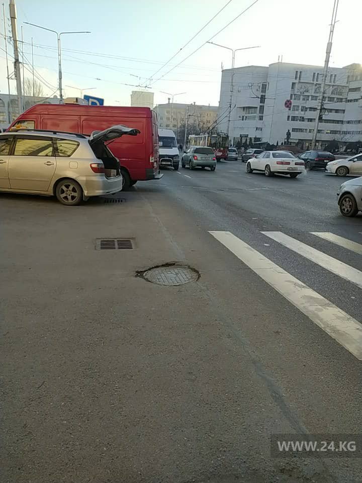 На пересечении улиц Фрунзе и Тоголока Молдо автовладелец оставил своего железного коня прямо на перекрестке.