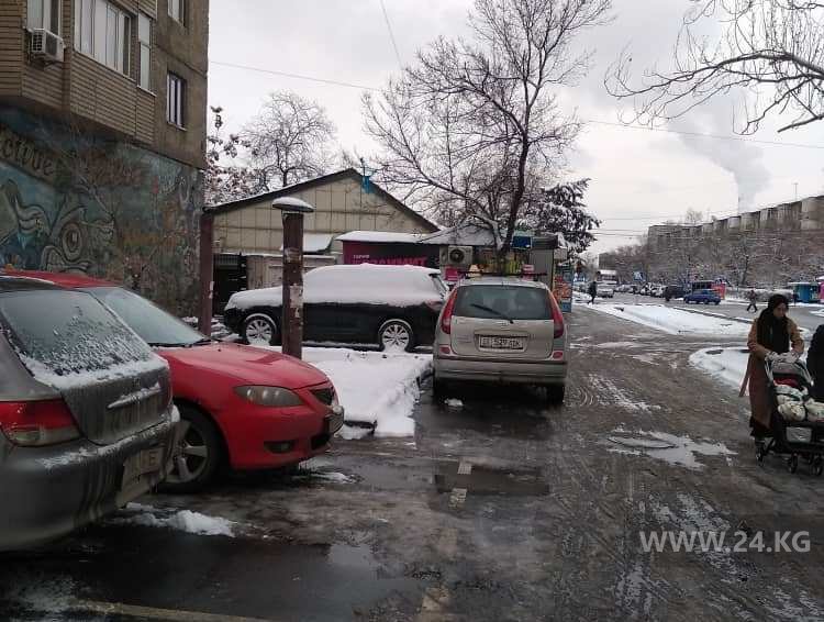Несколько машин стояли на тротуарах: на улицах Огонбаева, Чокморова, Руставели, а также в 8-м микрорайоне.
