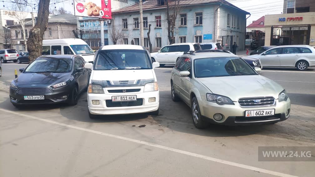 Вообще, водители Бишкека часто паркуются на тротуарах.