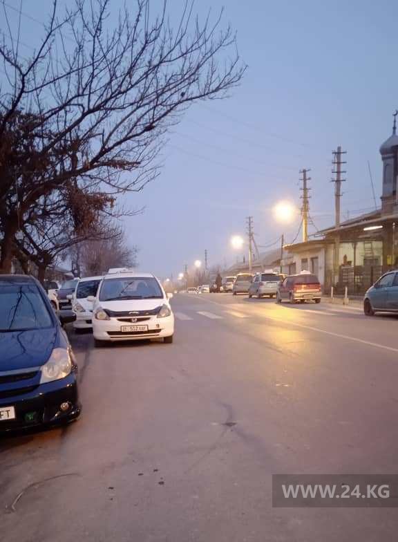 В городе Оше машины припарковали слишком близко к разметке пешеходного перехода. Из-за них не видно переходящих дорогу детей.