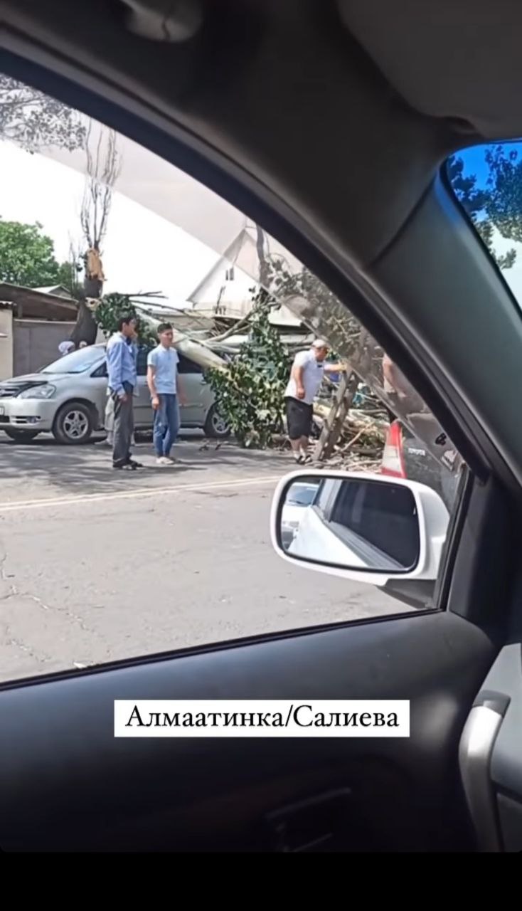 В Бишкеке дерево упало на автомобиль. Об этом в Instagram сообщил активист Эртай Искаков.