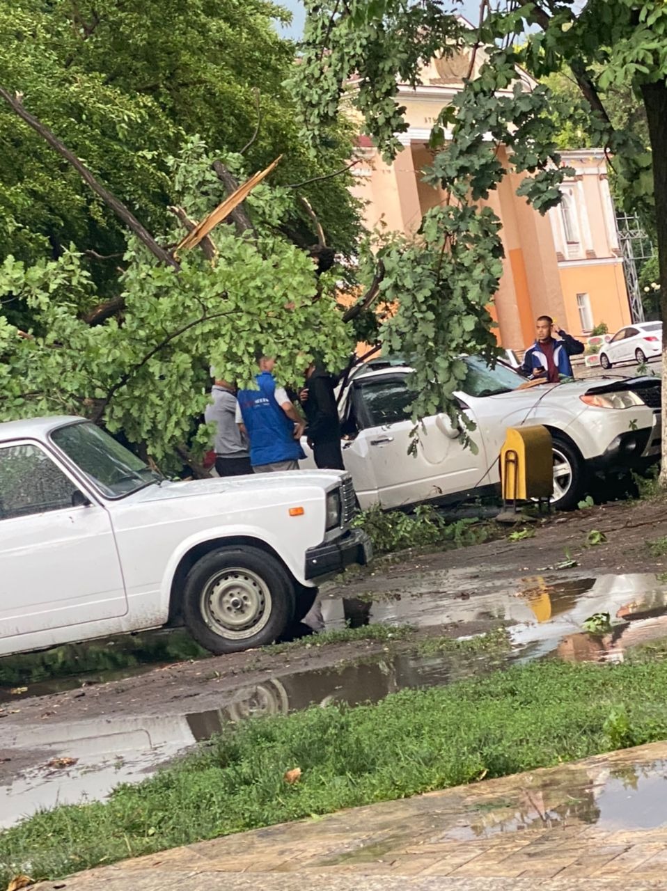 На опубликованных фотографиях видно, что после сильного ветра и дождя несколько деревьев вырвало с корнями. Они упали на тротуары и дороги. Повреждены также рекламные билборды.