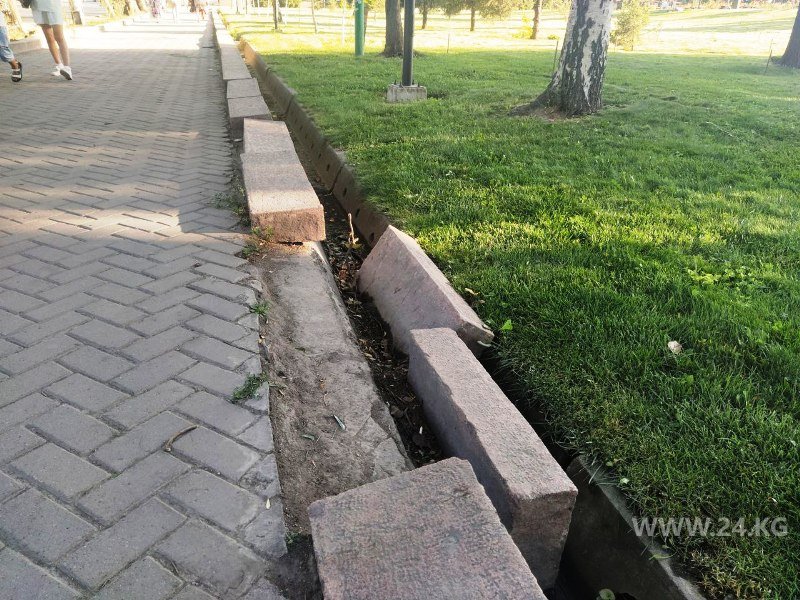 Читатель 24-kg.com показал, в каком состоянии находятся тротуары и бордюры в центре Бишкека.