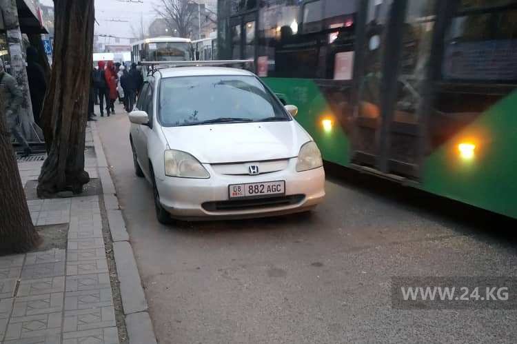На улице Байтика Баатыра, напротив кафе Hunkar, как всегда заехали на тротуар.