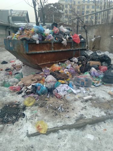 «Контейнеры для сбора бытовых отходов на улице Курманджан Датки, 278. Завалы — результат бездействия МТУ «Сулейман-Тоо» и коммунальных служб. Я неоднократно обращалась к руководству МТУ с просьбой обеспечить отдельными мусорными баками, расположенными вокруг нашего дома, многочисленные торговые точки, парикмахерские и столовые, но меня никто не хочет слышать. На фото большие черные мешки — их отгружают ресторан «Брауни» и закусочная «Эки дос», находящиеся на первом этаже соседнего жилого дома. Разговоры по душам результатов не приносят», — написала она.