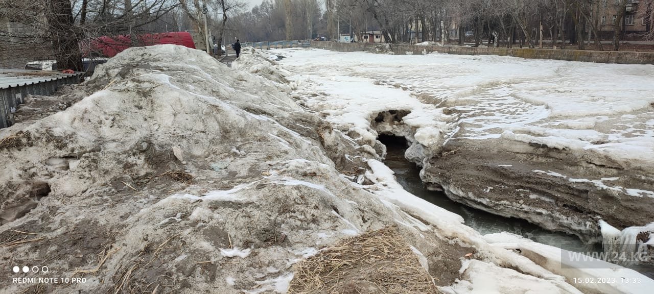 После очистки реки Ала-Арчи жителям оставили гору из снега и грязи. Об этом 24-kg.com сообщил читатель.