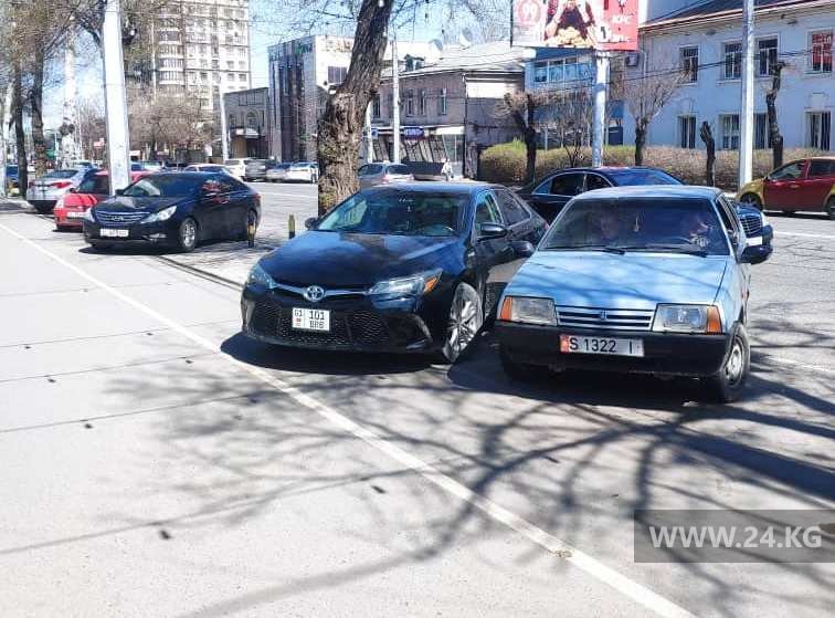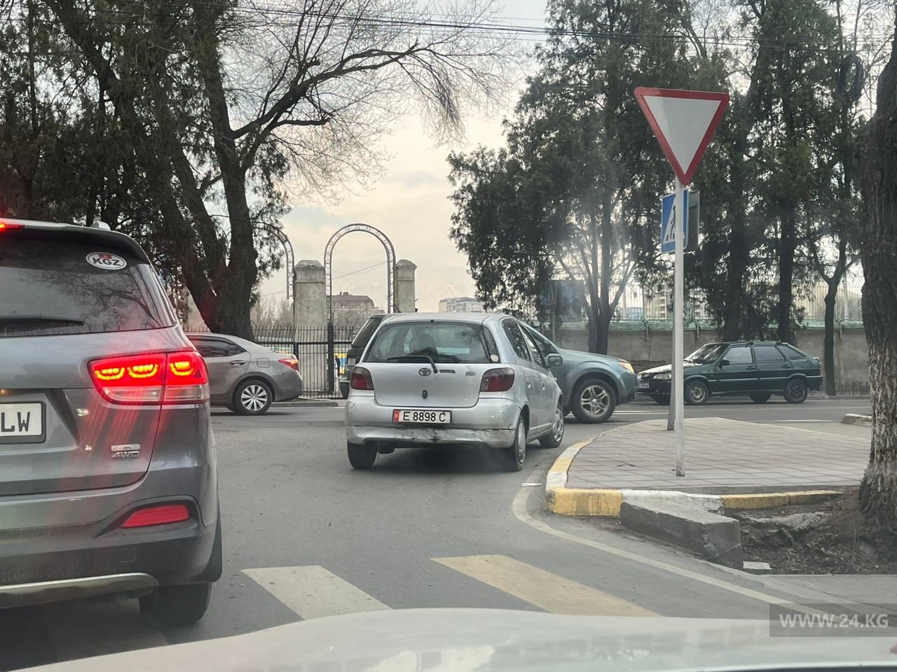 Чудаки парковки. На улице Фрунзе в Бишкеке машину оставили прямо на перекрестке