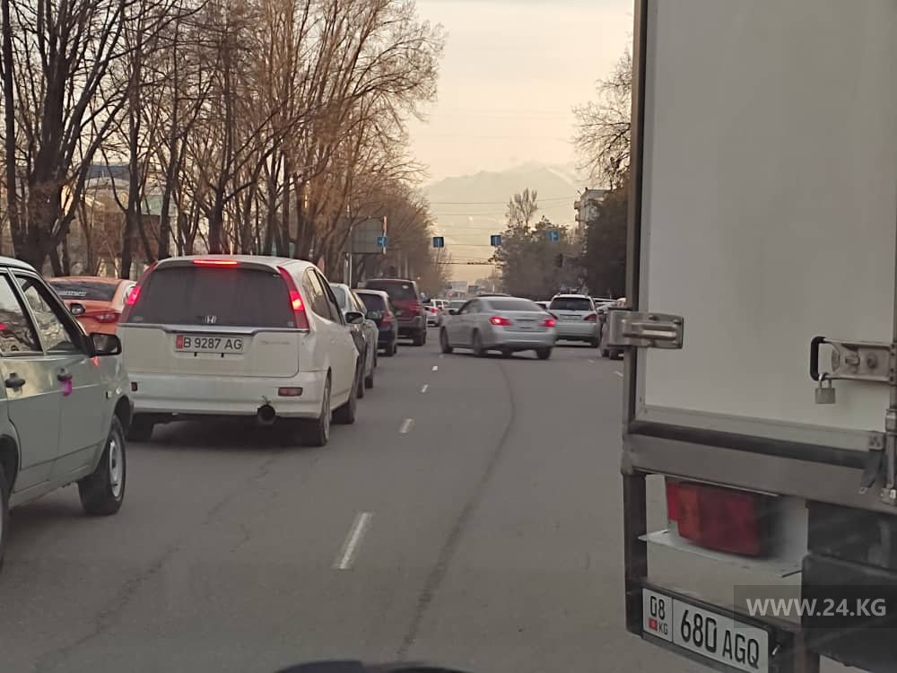 На перекрестке улиц Ибраимова и Токтогула авто оставили на разметке пешеходного перехода.