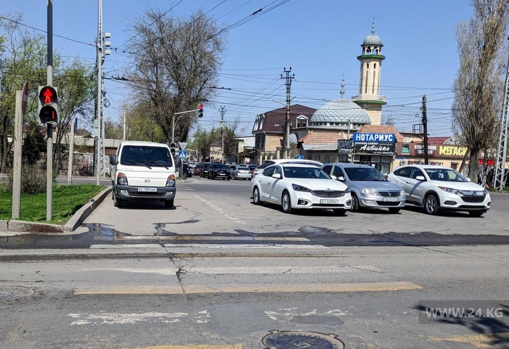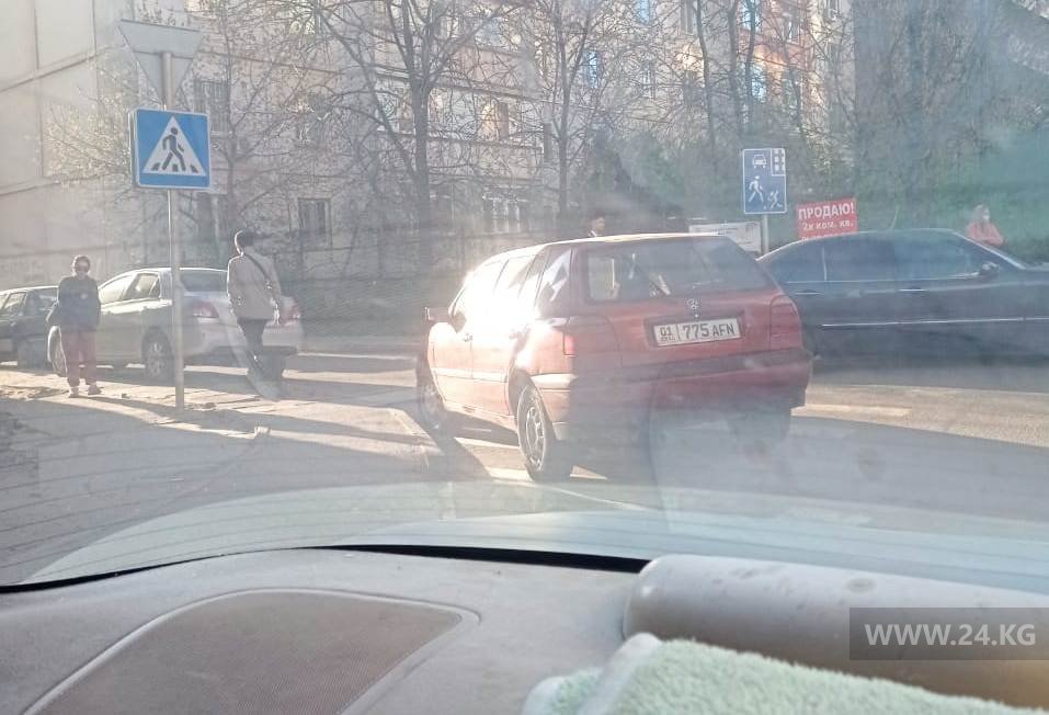 На улице Тоголока Молдо машину поставили на разметке пешеходного перехода, закрыв дорогу людям.