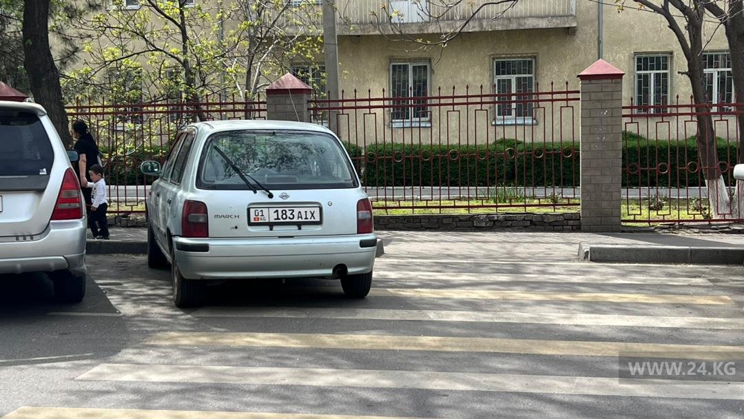 Часто в Бишкеке заезжают на разметку пешеходного перехода. Это фото сделано на улице Логвиненко.