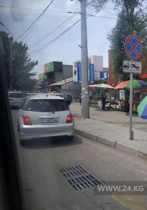 На остановках общественного транспорта продолжают парковать машины. Об этом 24-kg.com сообщили читатели.