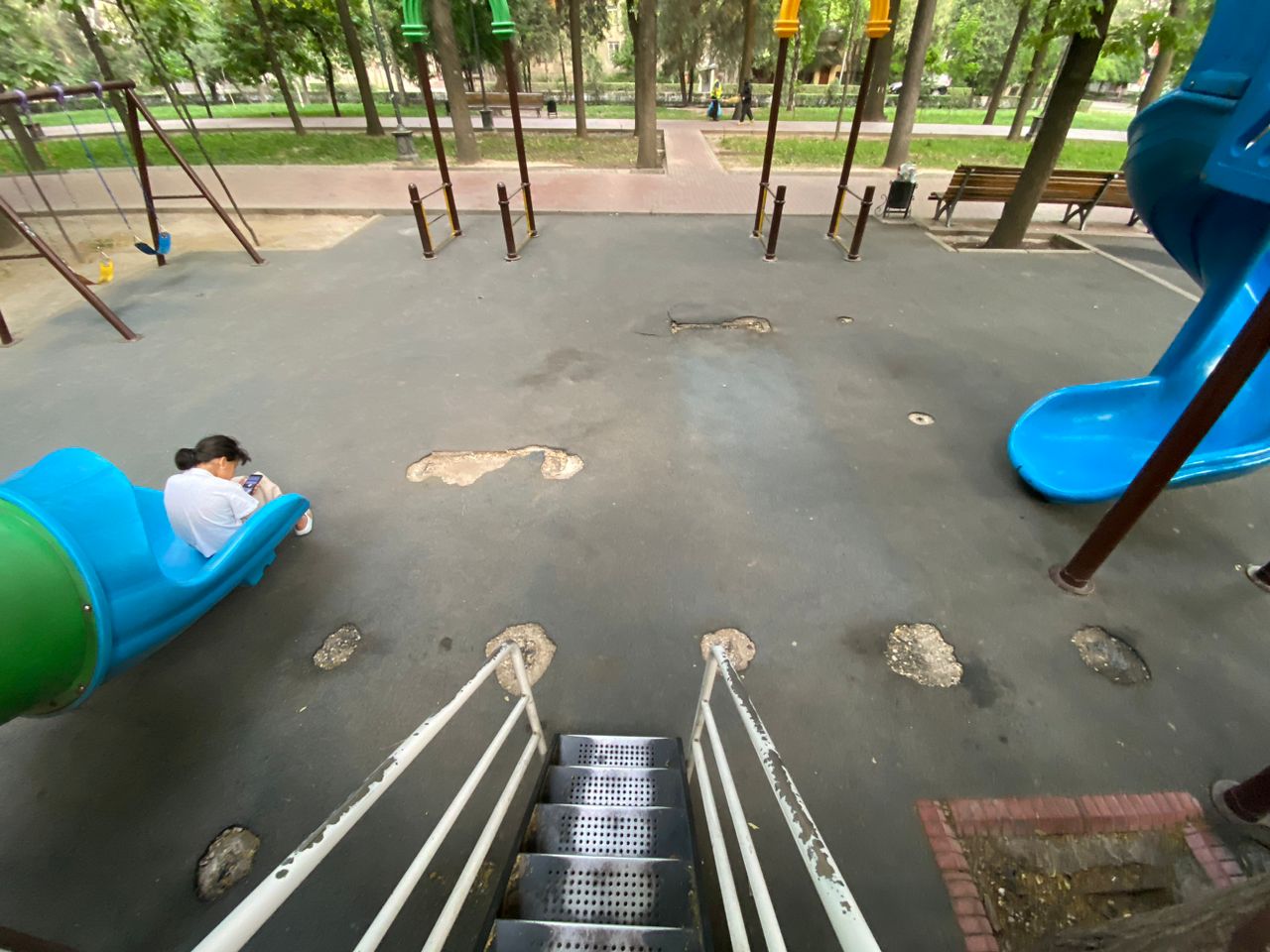 Читатель также раскритиковал перенос детской площадки. По его словам, покрытие с дырами, все грязное, качели, горку так и не помыли, половина из установленного шатается.