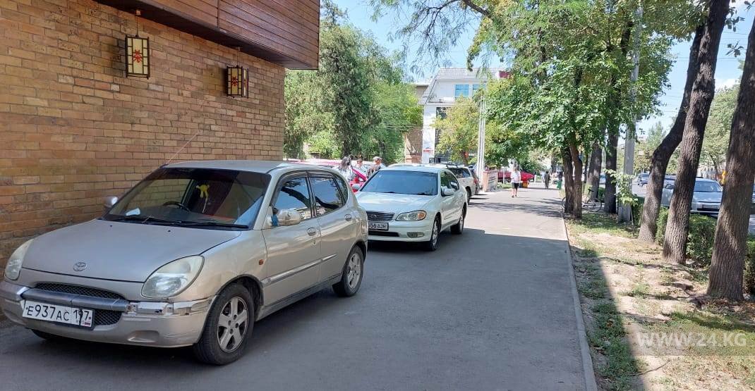 В районе пересечения улицы Токтогула и проспекта Манаса часто заезжают на тротуар.