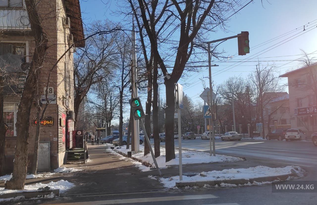 На пересечении улиц Ахунбаева и Руставели погнули опору светофора. Об этом 24-kg.com сообщил читатель.