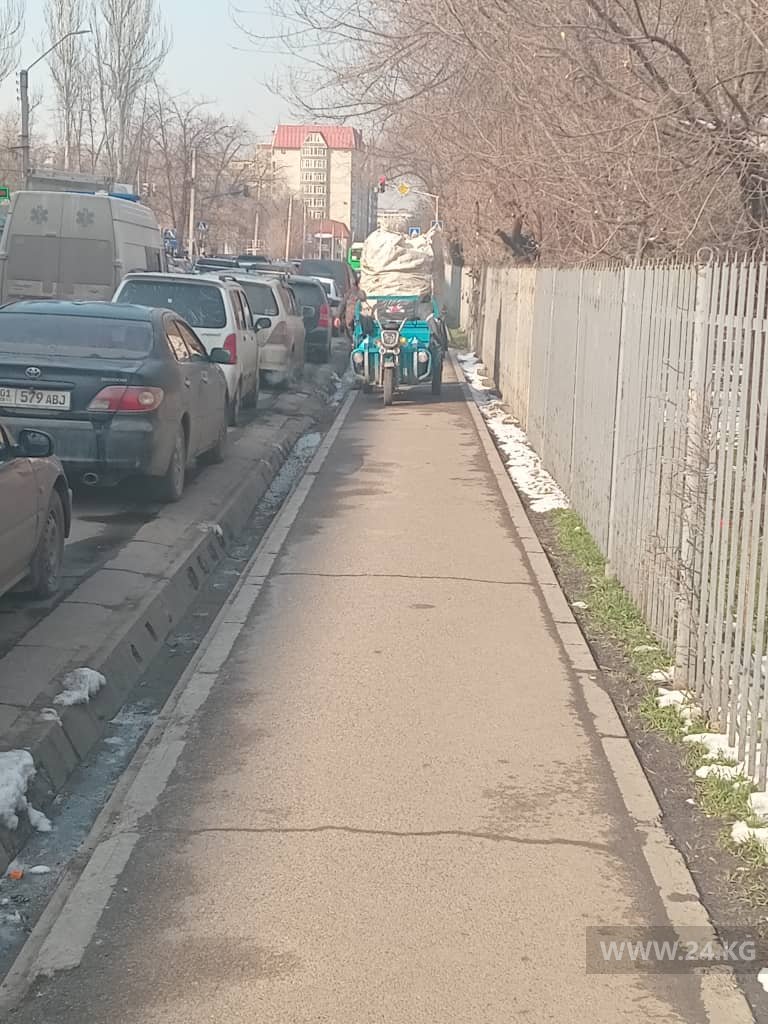 «Грузовые мотороллеры повадились ездить по узким пешеходным тротуарам. Это прежде всего касается водителей, собирающих пластиковые бутылки из мусорных баков. Они сигналят пешеходам, требуя уступить дорогу. Это опасно», — написал 24-kg.com читатель.