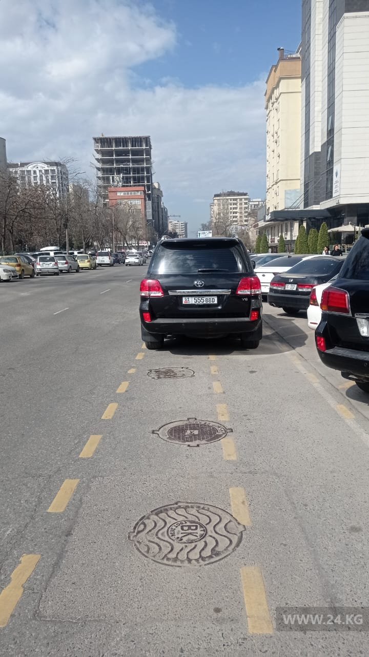 Машины на велодорожке на улице Токтогула никого уже не удивляют. Здесь это обычное дело.