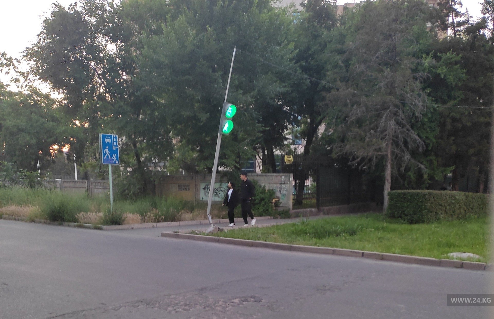 На проспекте Чингиза Айтматова, в районе парка «Адинай», сломали столб светофора. Об этом 24-kg.com сообщил читатель.