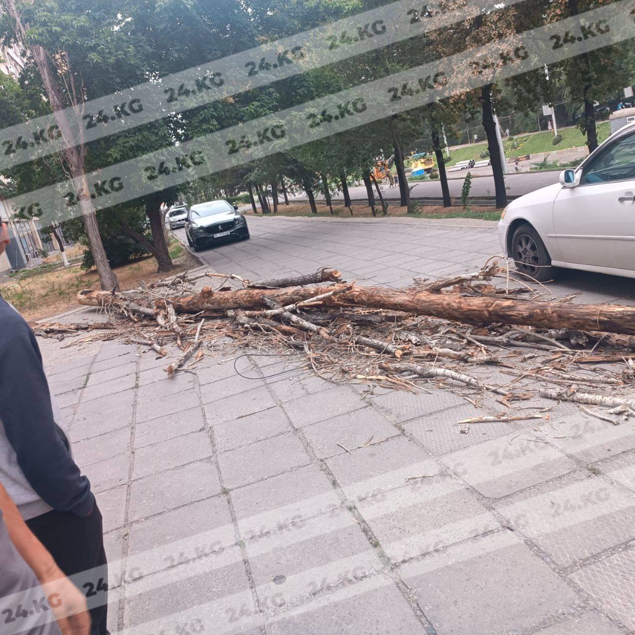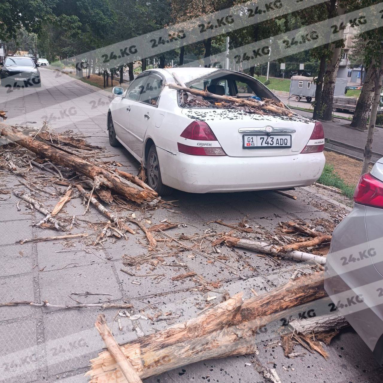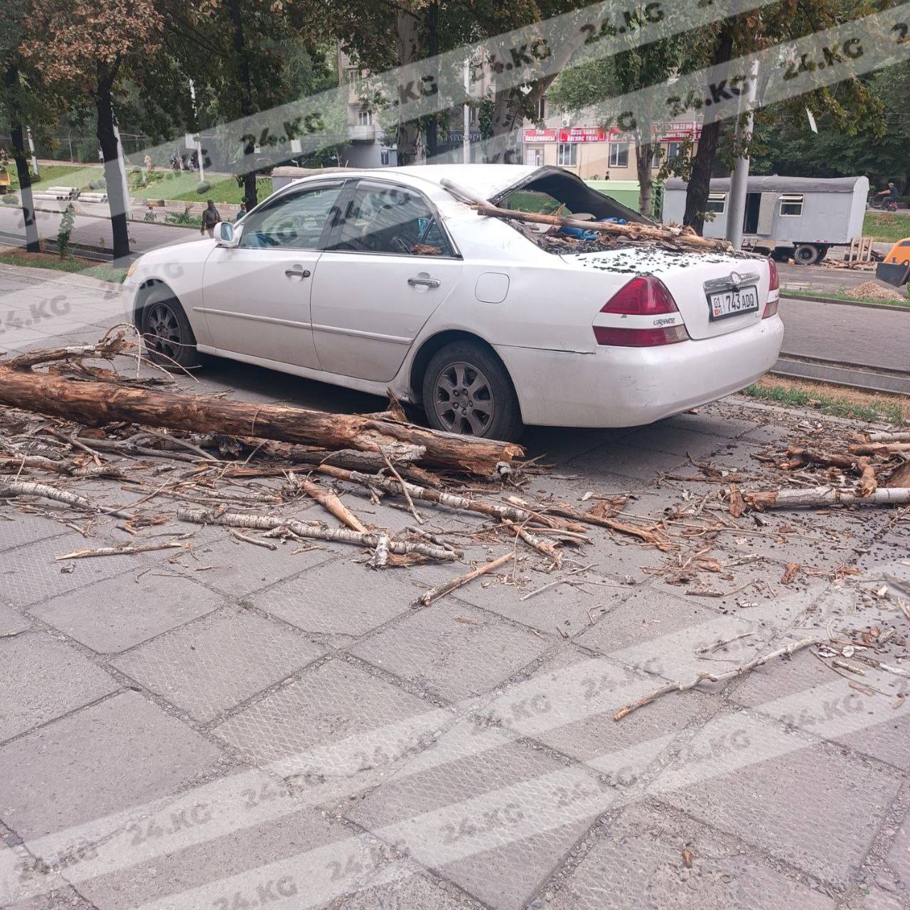 В Бишкеке во время ветра ветка упала на автомобиль. Видео 24-kg.com прислали читатели.