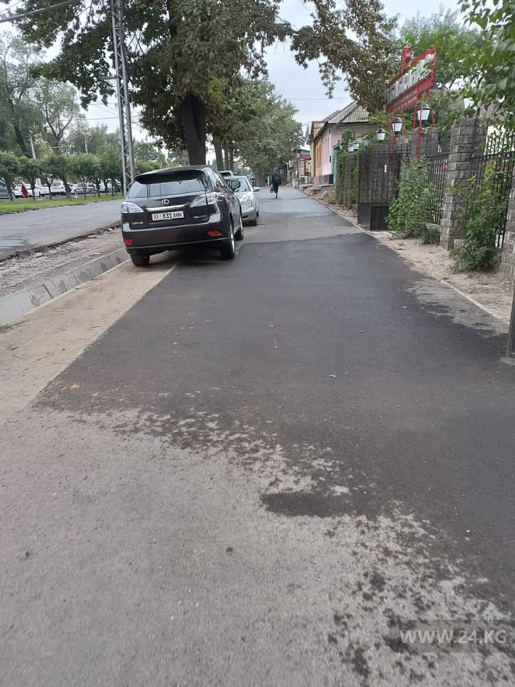 Парковку на тротуаре устроили на проспекте Жибек Жолу, в районе пересечения с улицей Суюмбаева.