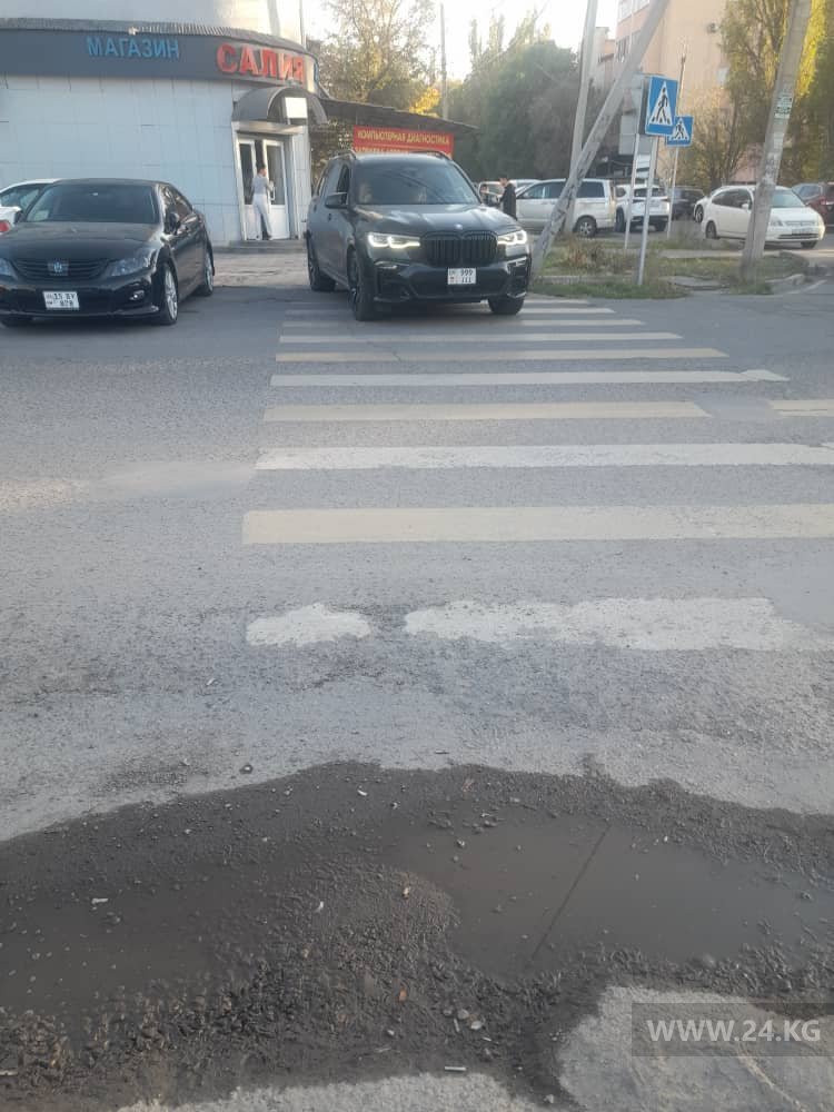 Вот так на разметке пешеходного перехода припарковался владелец внедорожника.