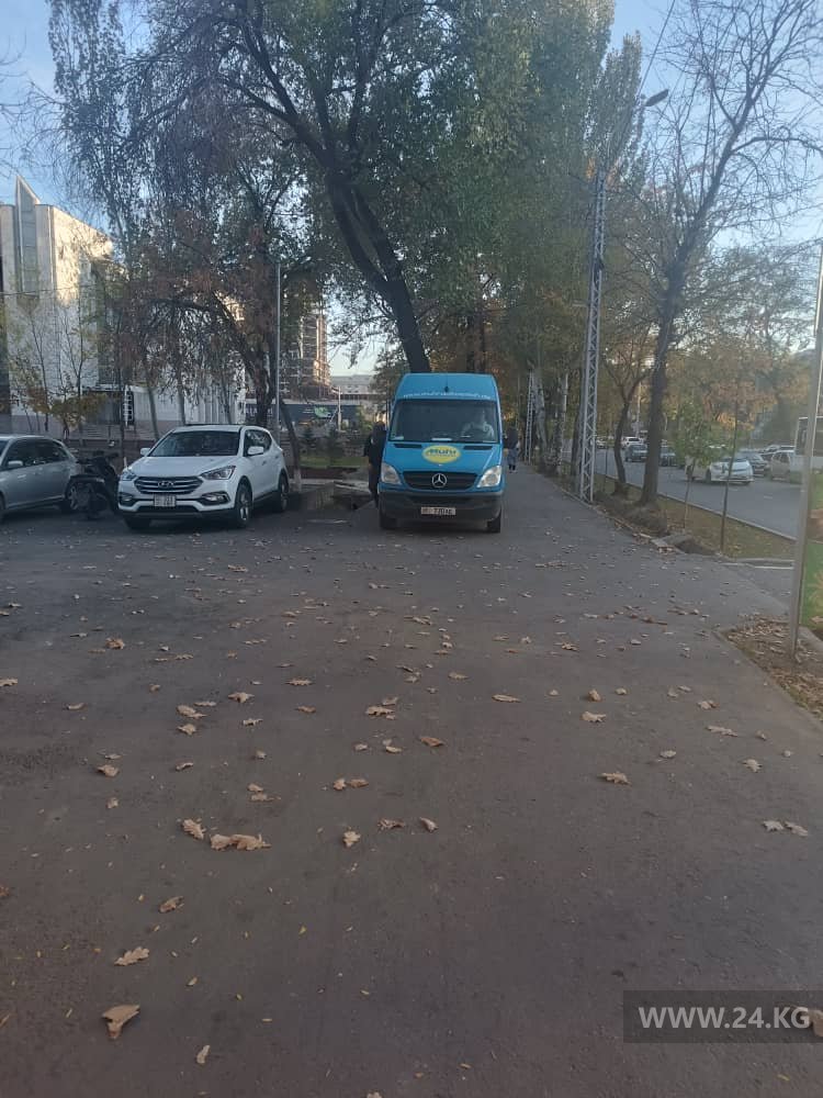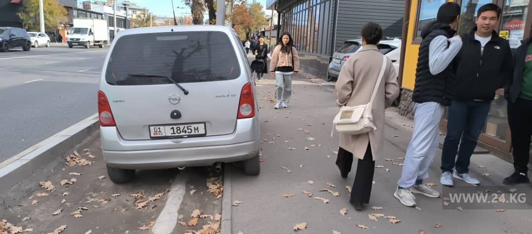 Вот так теперь паркуются на улице Ахунбаева, в районе улицы Токтоналиева. Водители едут по тротуару. Напомним, после масштабной реконструкции улиц Бишкека муниципальные службы закрыли бордюрами места для стоянки.