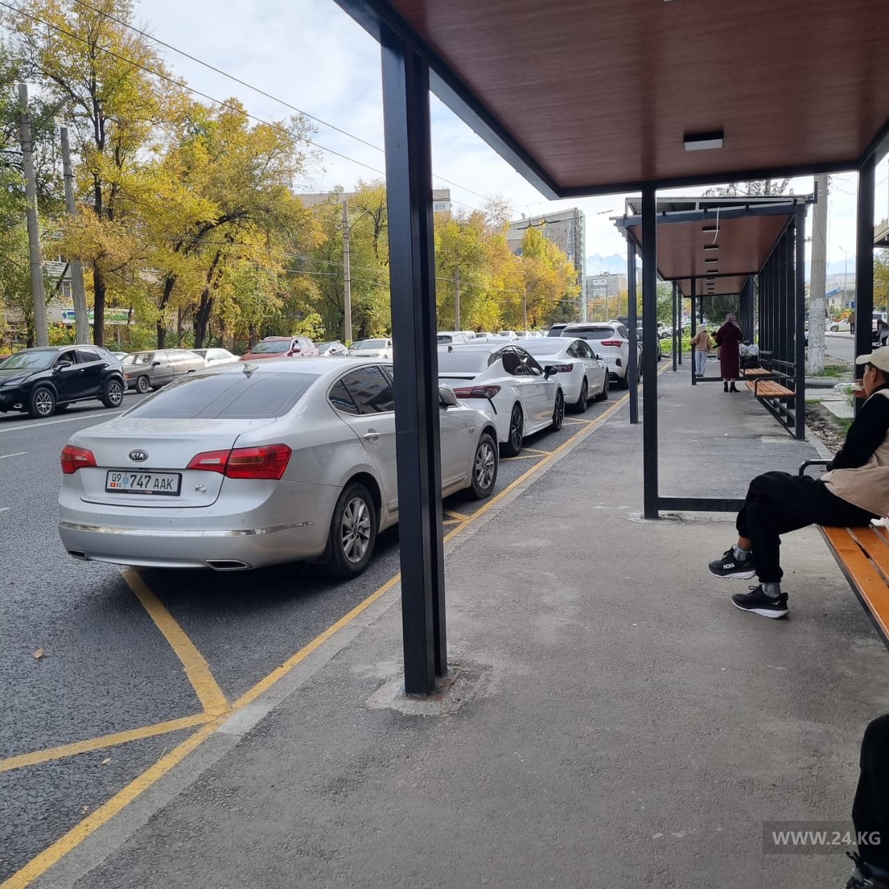 На остановке на улице Юнусалиева в 7-м микрорайоне общественному транспорту негде остановиться — все занято личными авто.