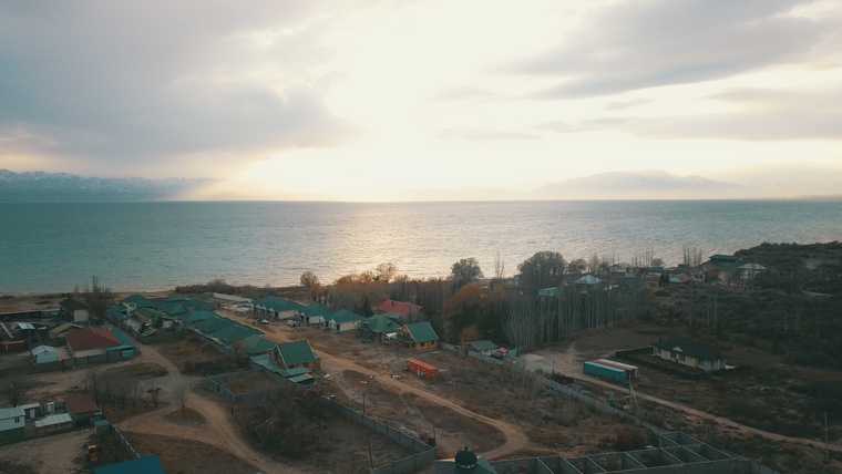 Теперь едем на январский Иссык-Куль. Сразу после празднования Нового года на озере побывал Белек Иманов и сделал несколько фотографий. Вид у сияющего летом Иссык-Куля оказался довольно суровым.