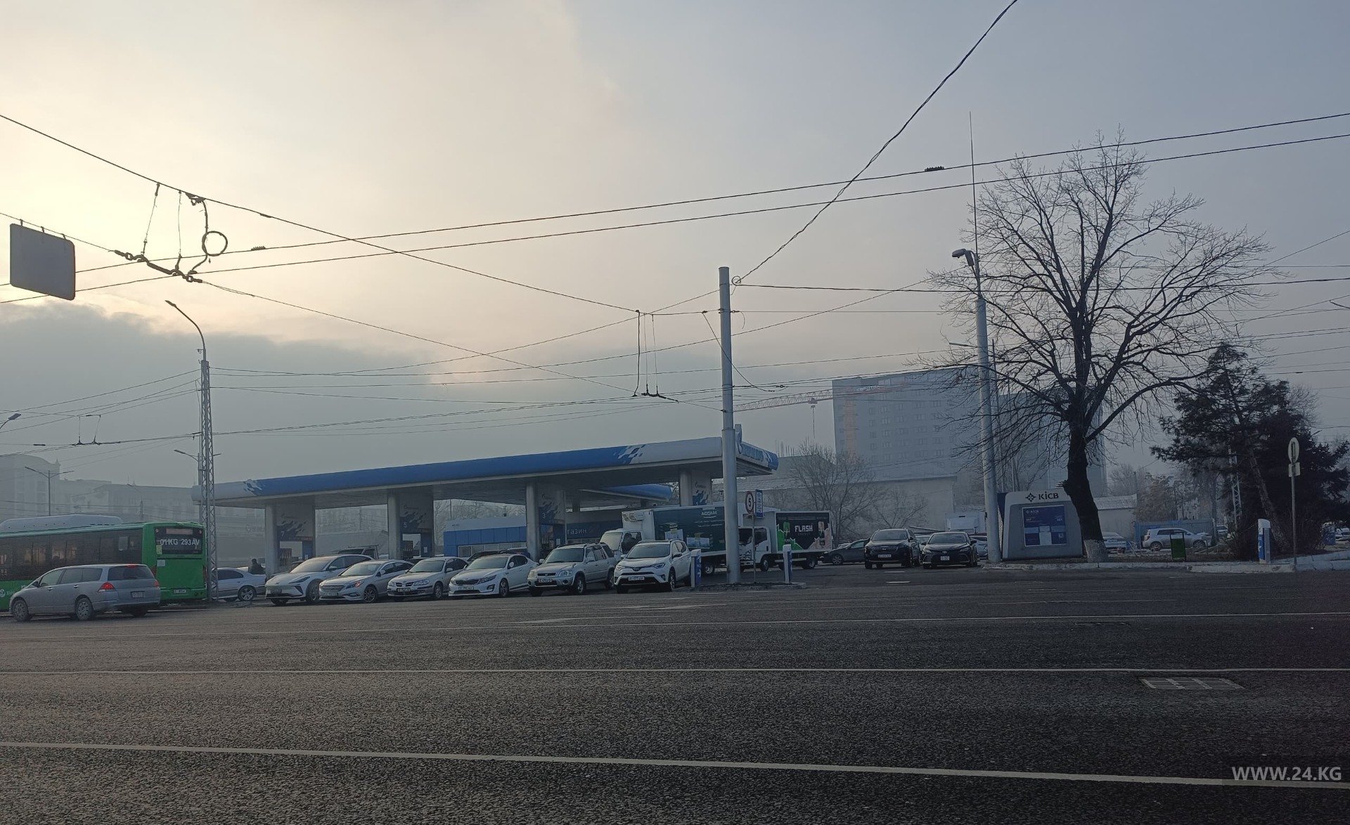 Въезд на автозаправку на проспекте Жибек Жолу постоянно заставлен машинами клиентов расположенного напротив ЦОНа.