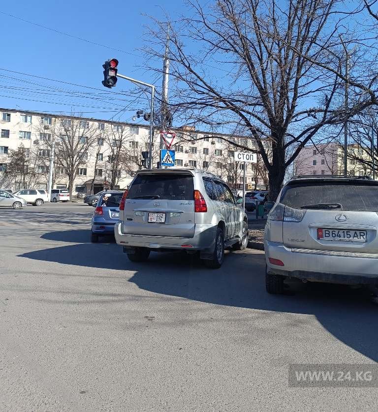 «Парковка на проезжей части перекрестка проспекта Чуй и улицы Айтматова. УПСМ, примите, пожалуйста, меры!» — написал очевидец.