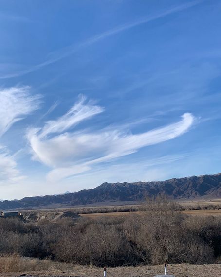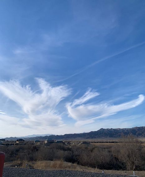 Красивые фотографии необычных облаков в селе Семиз-Бел Кочкорского района сделала Жумагуль Тентиева. Она назвала их «Птицы — фениксы».