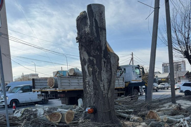Ради вывески кафе в Бишкеке спилили полувековой тополь