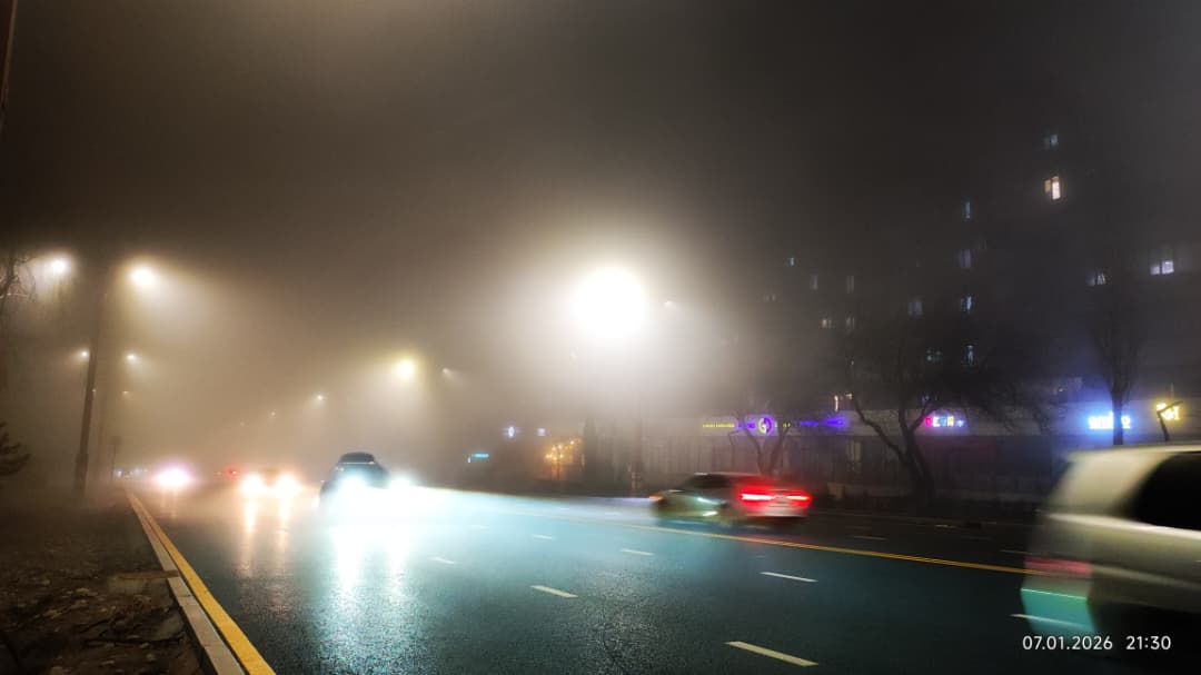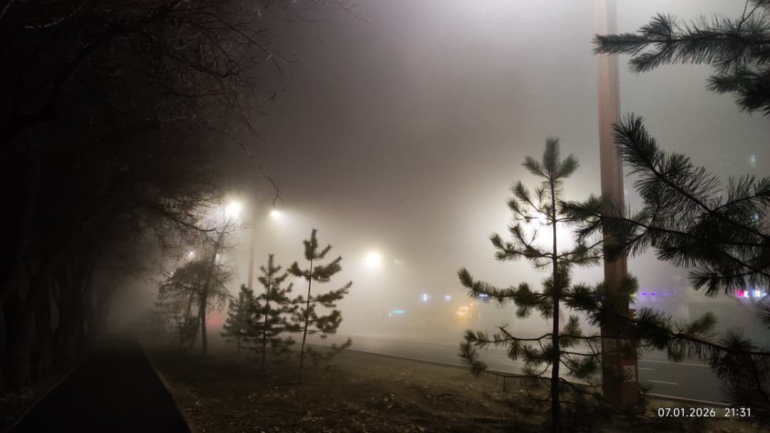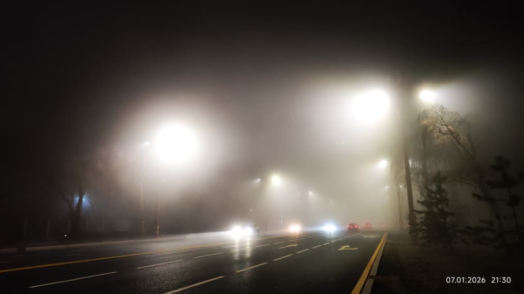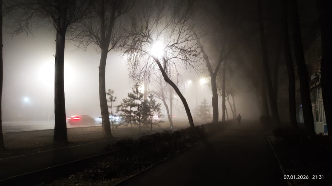 Фото Айбека Султанова. Туман в Бишкеке, 7 января 2026 года
