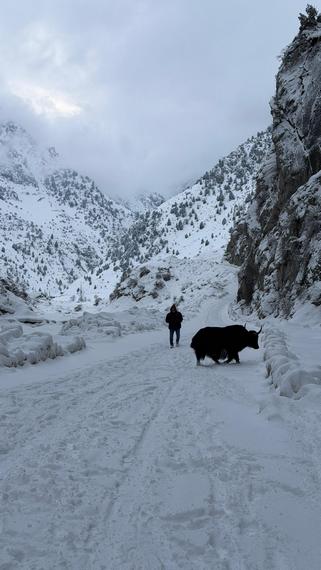 Выбираемся из города. Если в Бишкеке снегом и не пахнет, то в предгорьях его предостаточно. Свои фотографии Диляра Альмеева сделала уже в этом году выше природного парка «Ала-Арча» в стороне горнолыжной базы «Кашка-Суу».