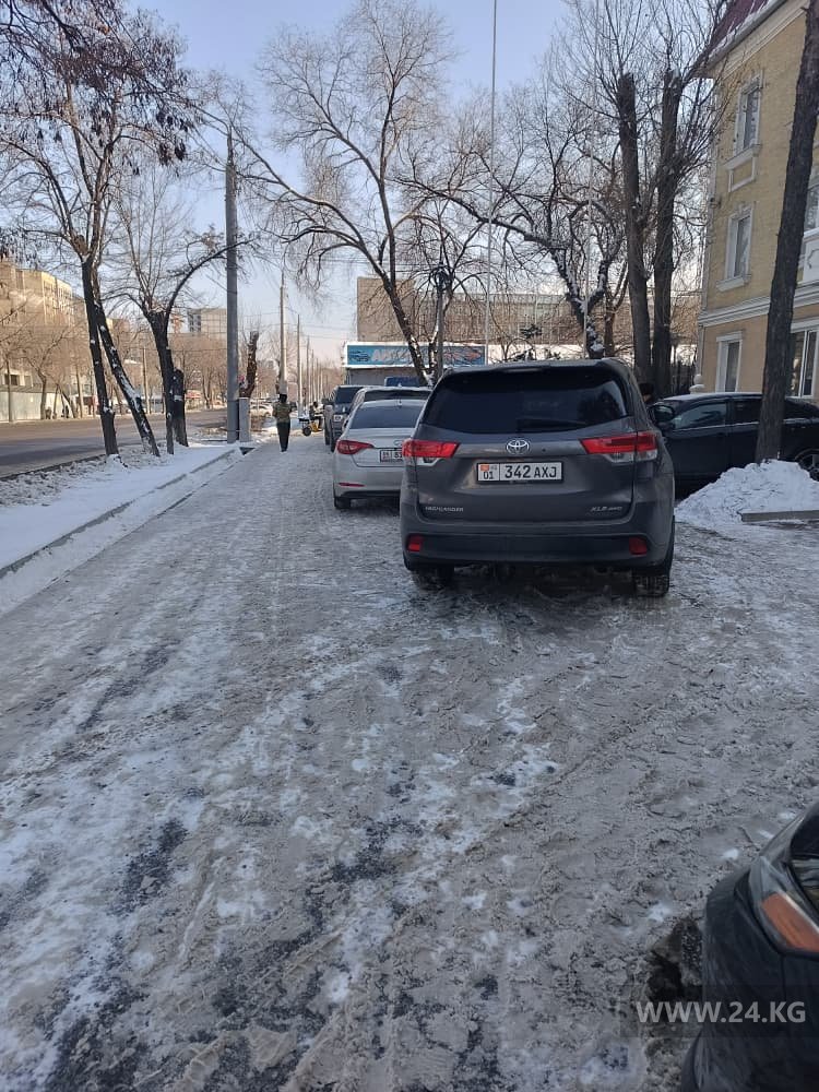 «Улица Токтоналиева в Бишкеке. Автомобили стоят на тротуарах. Как их обходить — проблема пешехода», — написал горожанин.