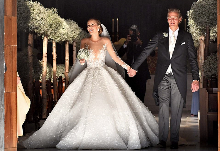 Наряд невесты, который был украшен 500 тысячами кристаллов, весил 46 килограммов.