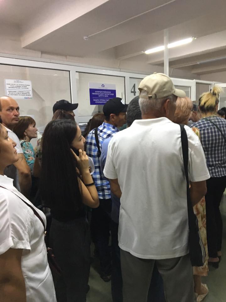 Айдай Абдыканова в социальной сети написала, что 2 месяца назад сдала документы на получение загранпаспорта. Он до сих пор не готов. «Оказалось, что там есть те, кто и 3-5 месяцев ждут паспорт. Полно народу. Ажиотаж. Можно целый день простоять в очереди. Кондиционера нет. Вонь стоит ужасная. Столько народу, а работает одно окошко», — рассказывает она.