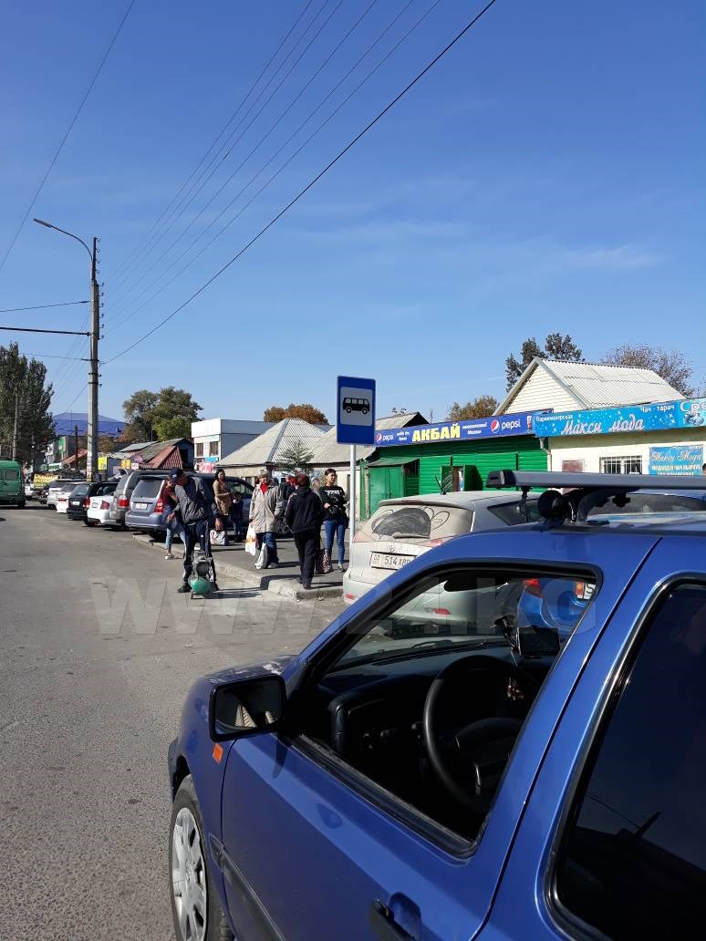 На Аламединском рынке машины паркуются прямо на остановке. Об этом ИА «24-kg.com» сообщили читатели.