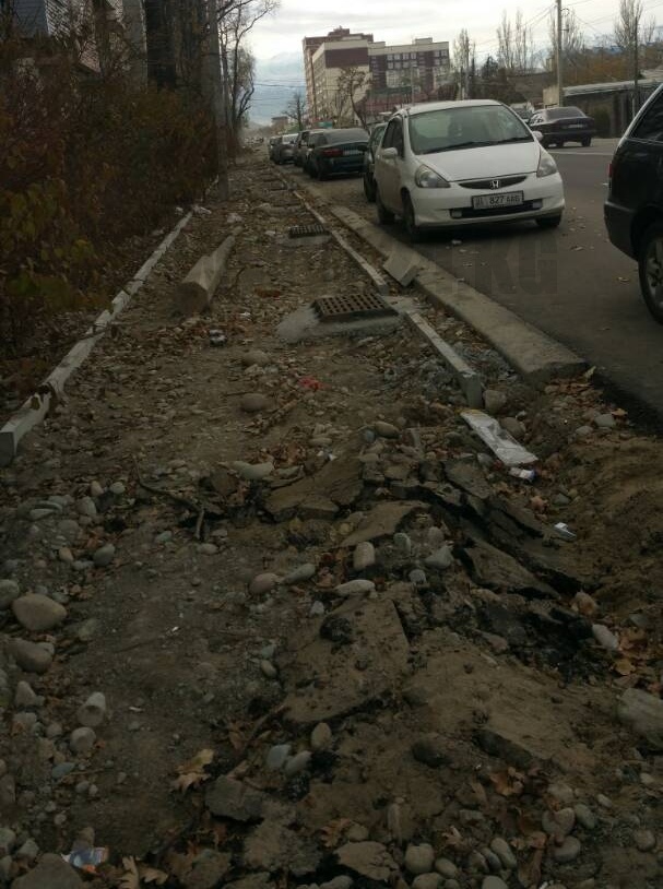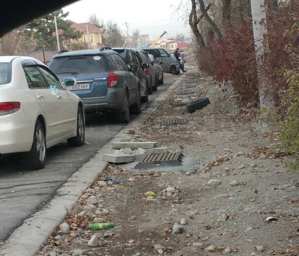 Две недели назад на улицу Токтоналиева завезли тротуарные бордюры. Немного поработали и бросили. Вчера, 24 ноября, их увезли, скорее всего, на тротуары по Малдыбаева.