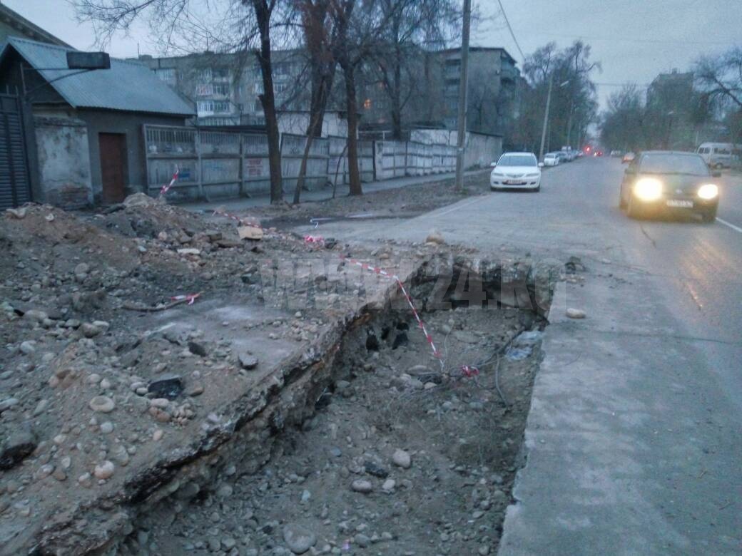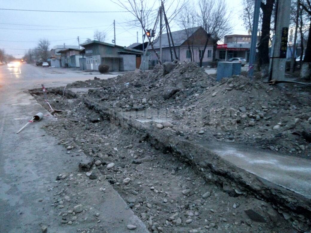 «Ранее на пересечении улиц Жумабека и Суюмбаева начали ремонт теплосети, ведущей к строящейся мечети. Все было огорожено, движение перекрыто. Несмотря на запрещающие знаки, машины все равно ездят. Более того, ограждение убрали. Ночью или рано утром водитель или пешеход может не заметить траншею», — пояснил бишкекчанин.