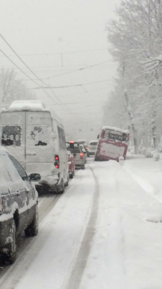 В Бишкеке из-за гололеда автобус №8 съехал в арык. Об этом сообщили в социальных сетях горожане.