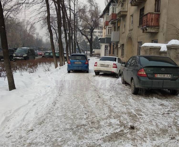 «Мы устали от бездействия мэрии», — написали ИА «24-kg.com» жители улицы Логвиненко, где на разбитом тротуаре между проспектом Чуй и улицей Киевской устроили парковку.