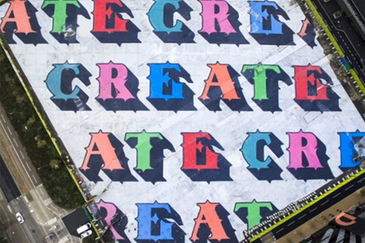 Масштабное граффити состоит из одного повторяющегося несколько раз слова сreate («твори»), написанного разноцветными буквами. Художнику понадобилось 500 часов, чтобы завершить работу.
