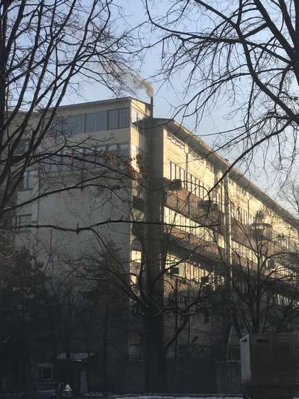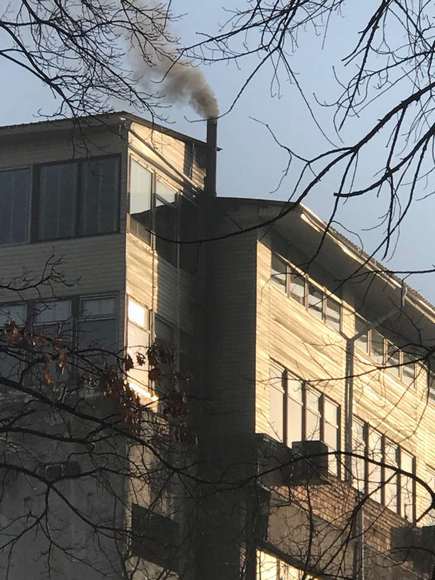 По их словам, проходя сегодня утром мимо улицы Ибраимова и проспекта Чуй, они почувствовали запах резины. Черный дым выходит из трубы многоэтажного здания.