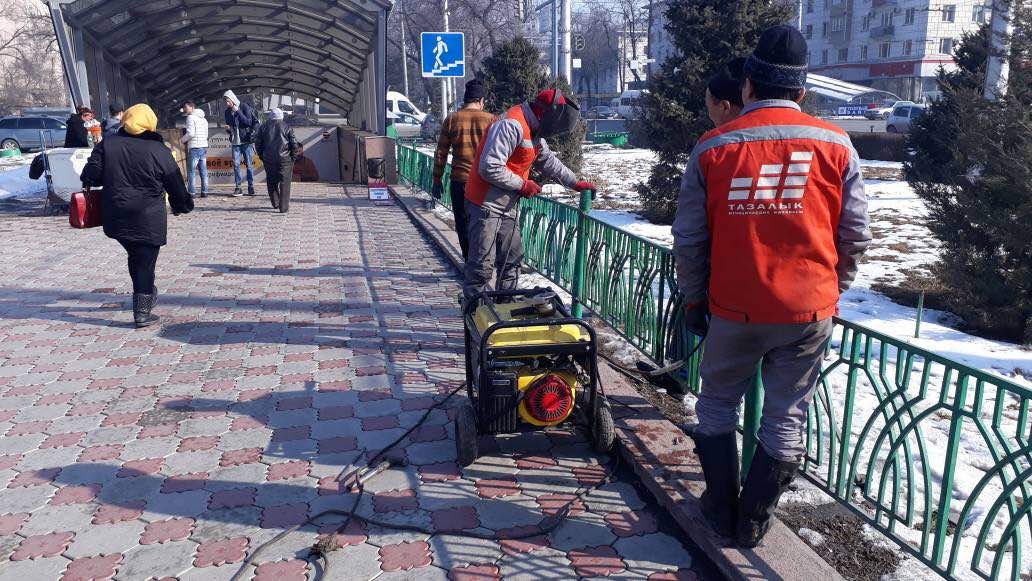 Ограждение напротив мэрии Бишкека сотрудники МП «Тазалык» восстановили. Об этом сообщили ИА «24-kg.com» в пресс-службе муниципалитета.