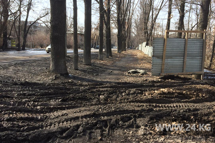 В Бишкеке в парковой зоне на улице Баялинова (бывшая Ленинградская) начали строительные работы. Об этом сообщили читатели ИА «24-kg.com».