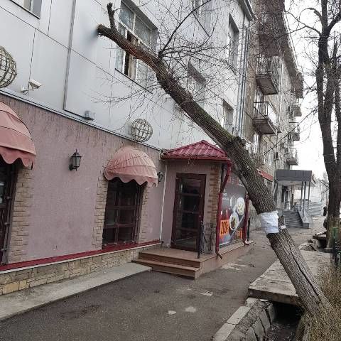В районе пересечения улиц Жукеева-Пудовкина и Кулатова упавшее дерево уперлось в стену здания. Об этом ИА «24-kg.com» сообщил читатель.
