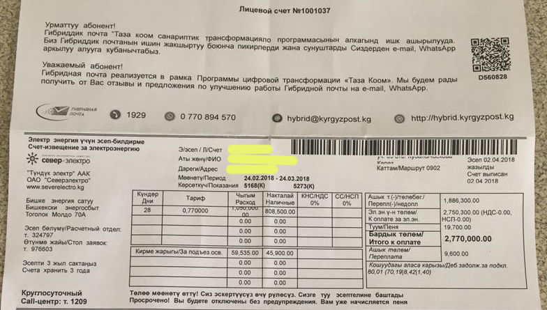В ГП «Кыргызпочтасы» ИА 24-kg.com объяснили квитанции с миллионными счетами.