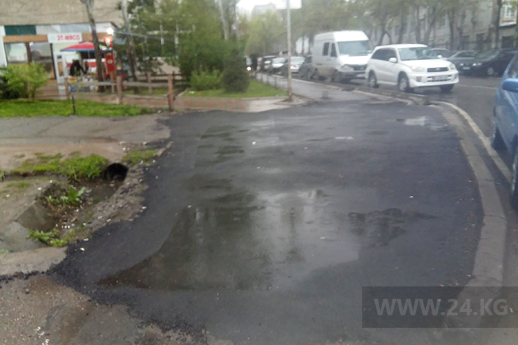 «Недолго радовались новому асфальту. Это надо было уложить так, что аккурат посередине тротуара образовалась лужа!» — сообщил читатель ИА «24-kg.com».